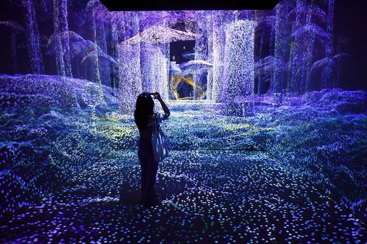 8月30日,全球首座合成生物科学馆在大兴生物医药产业基地正式落成开馆,成为国内生物科技新地标。图为观众体验现代光影技术展现的合成生物技术的奥秘。